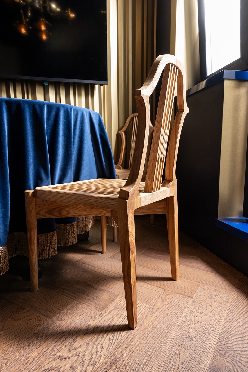 Этот проект для «Квартирного вопроса» сделан с привязкой к сказке Метерлинка "Синяя птица", волшебные образы которой теперь окружают жителей этой квартиры. На полу — кварцпаркет из коллекции «Английская Ёлка» Дуб Рустикальный (артикул 410).