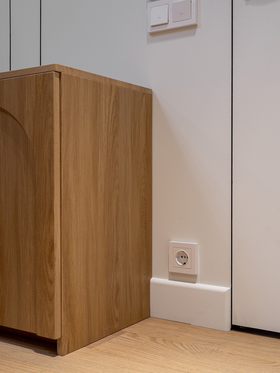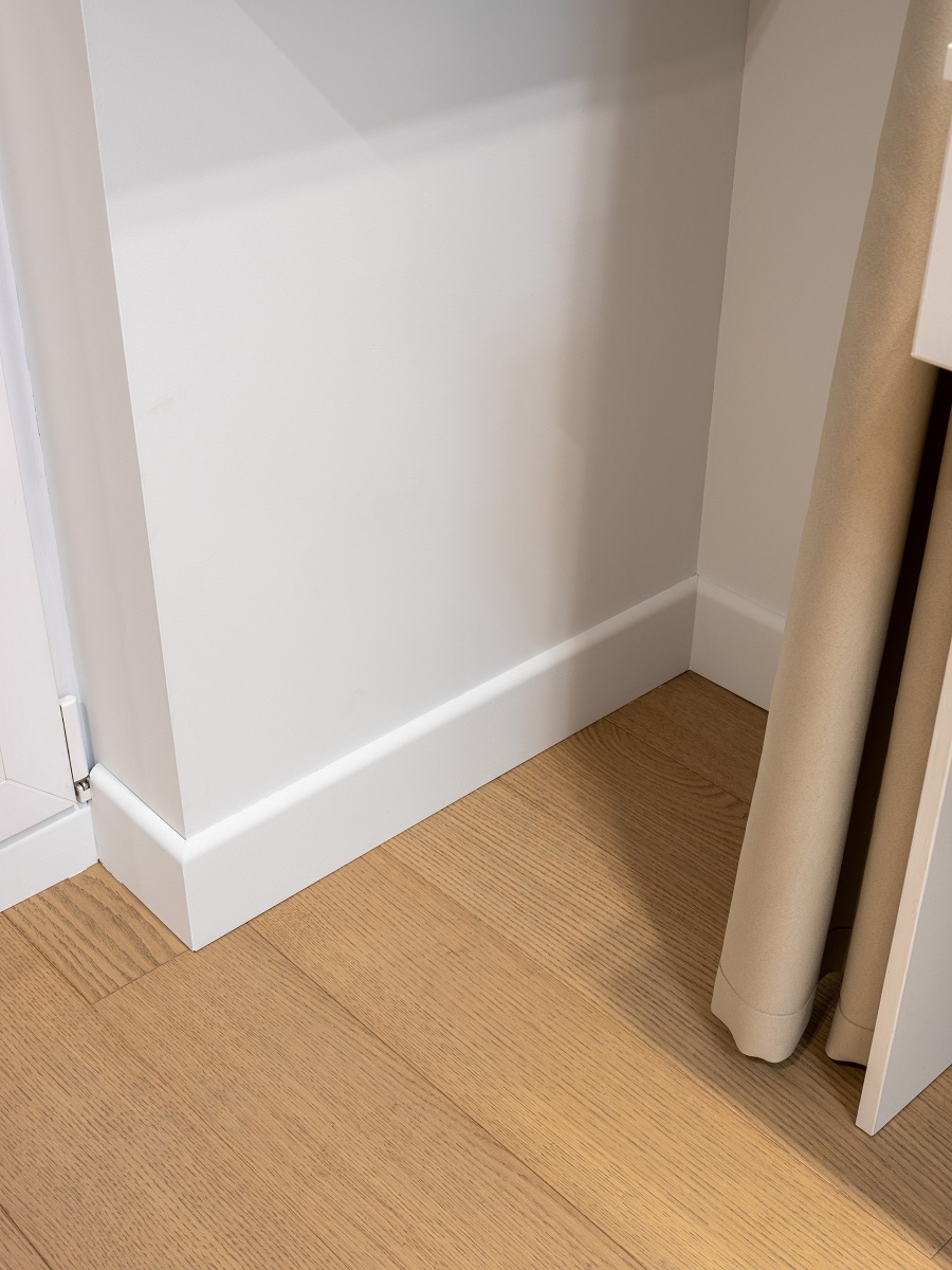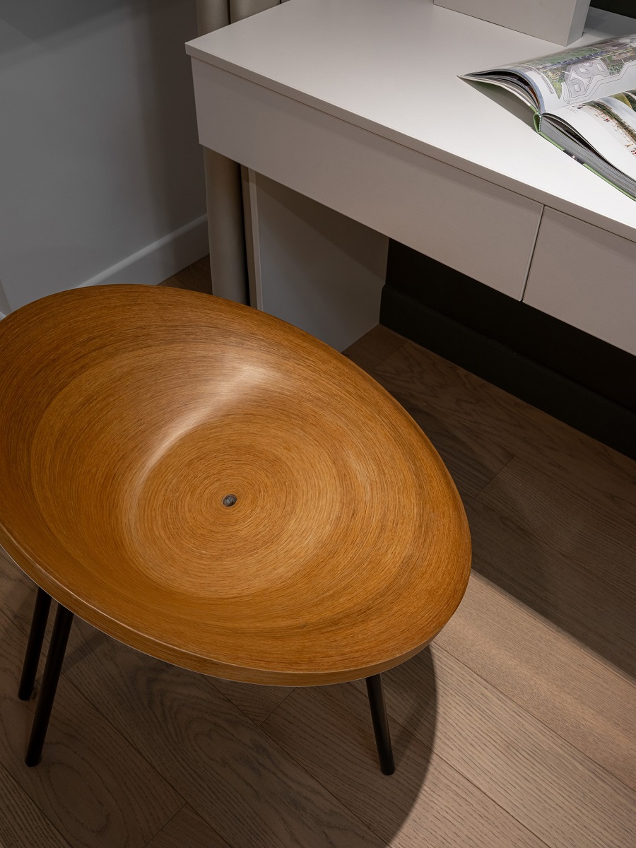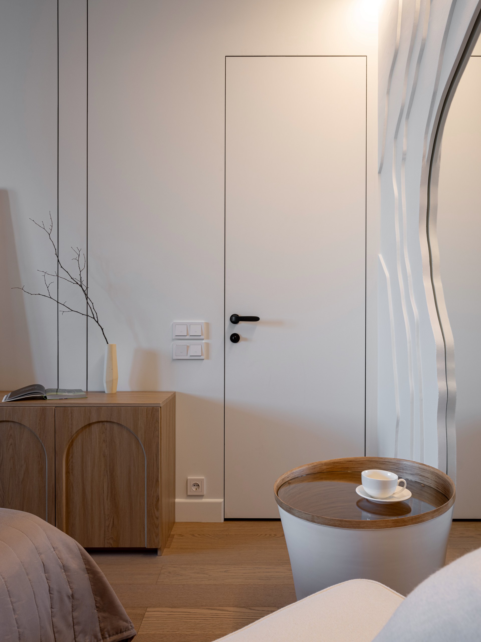 Подчеркнул её и пол из натурального дерева  — кварцпаркет Quartz Parquet Классик Дуб Флэт Уайт 1258-55.